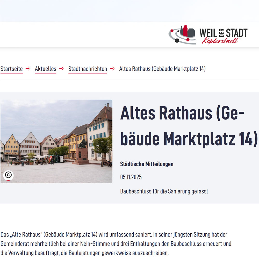 Baubeschluss für die Sanierung des denkmalgeschützten Gebäudes am Marktplatz in Weil der Stadt