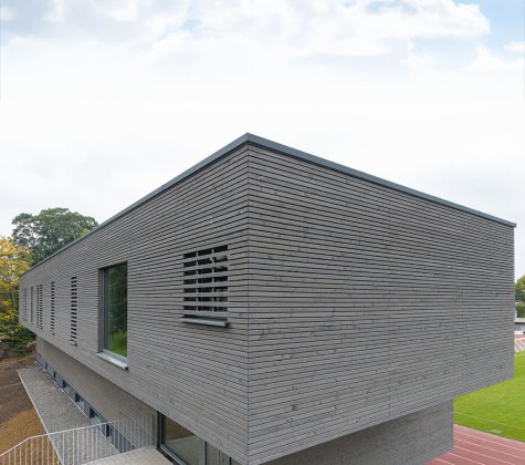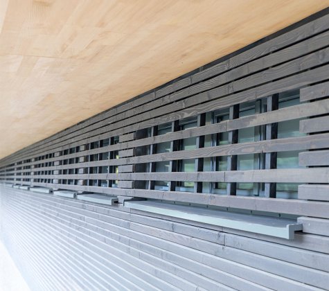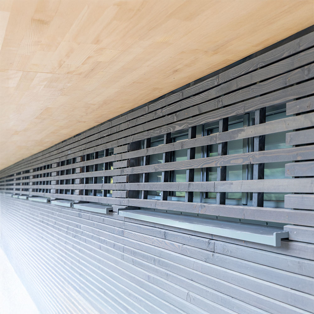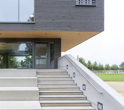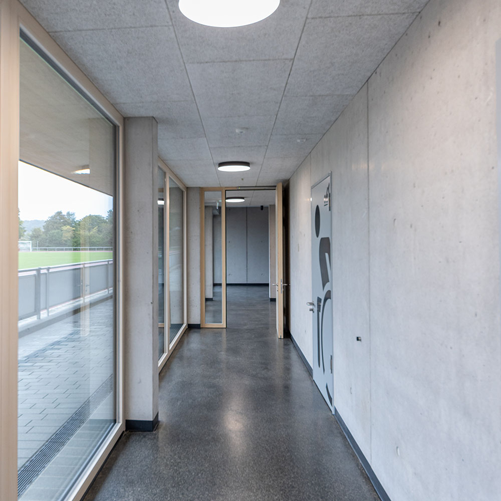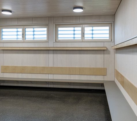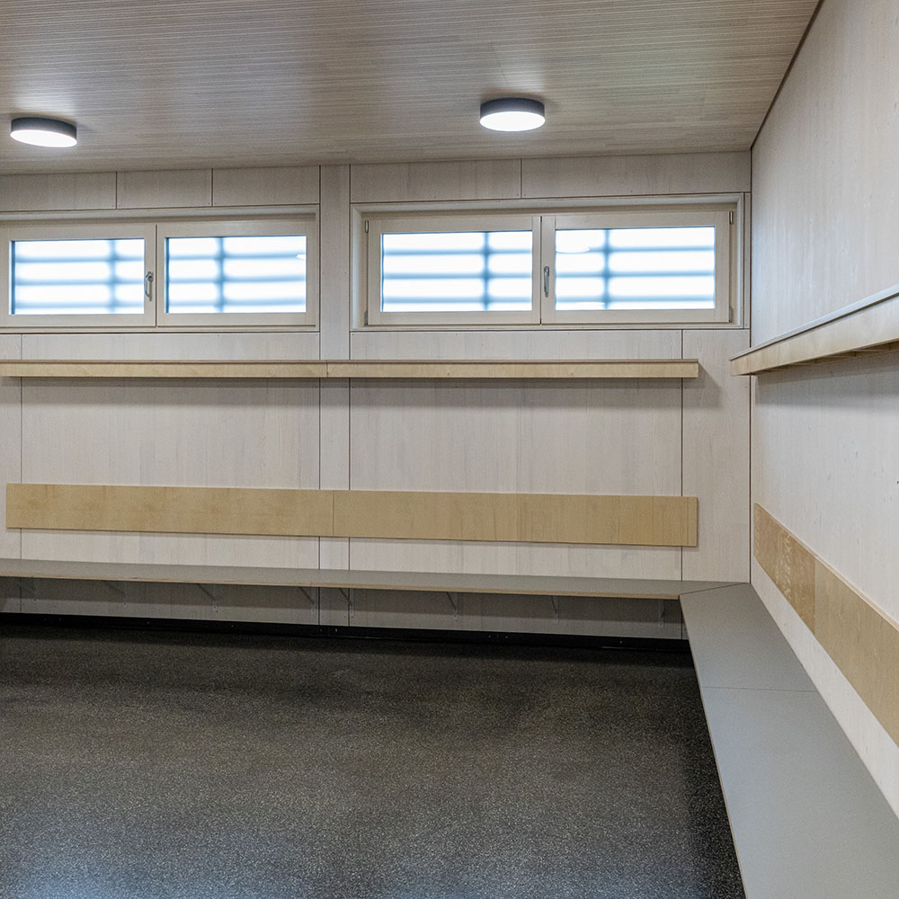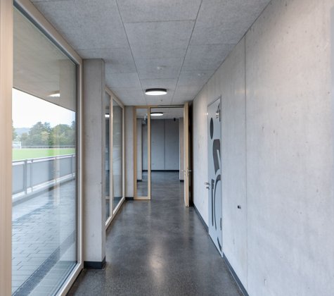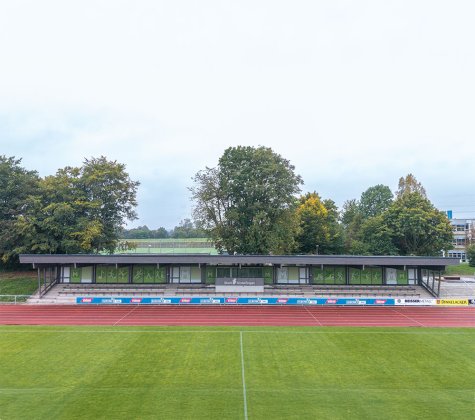Die Baukörper stehen in direktem Zusammenhang mit der bestehenden Tribüne und bilden zusammen eine neue Einheit. Die neuen Baukörper sollen die bestehende Tribüne ergänzen und als Bindeglied zum neu errichteten Kunstrasen Spielfeld südlich fungieren, der momentan „hinter“ der Sportanlage entstanden ist.